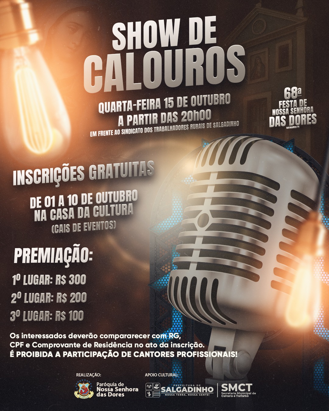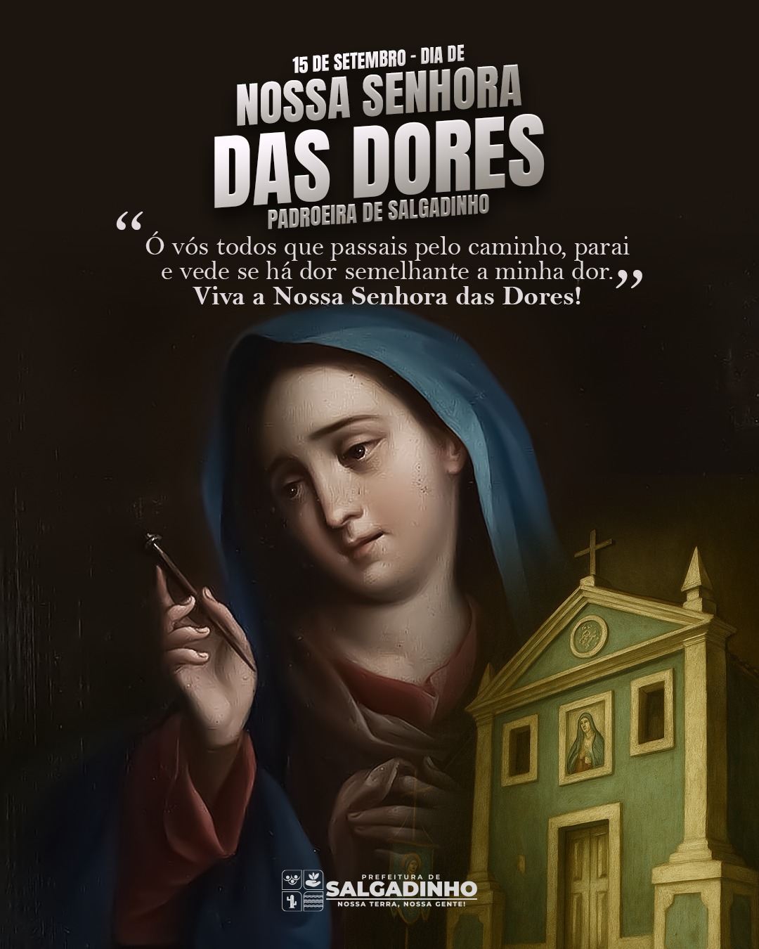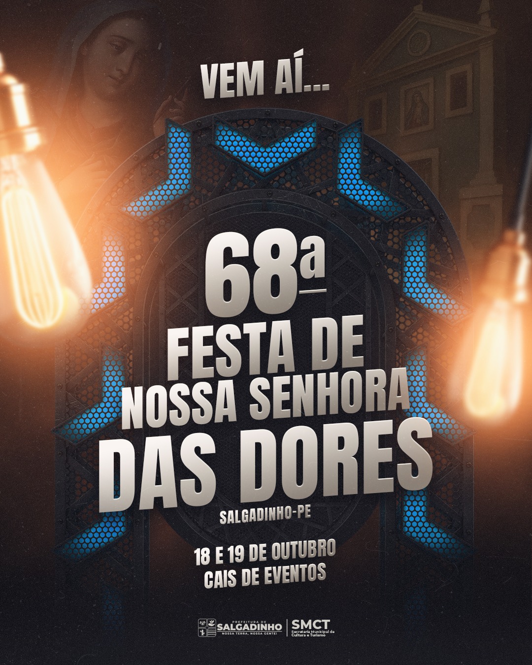 O Governo Municipal de Salgadinho, através da Secretaria de Cultura e Turismo, divulga as datas da 60ª Festa de Nossa Senhora das Dores. Segundo o Secretário Fellipe Cavalcante, serão três dias de festividade, sendo elas 13, 14 e 15 de Outubro, dentro das atrações, teremos apresentações culturais, apresentações religiosas e shows artísticos de nível nacional e regional.