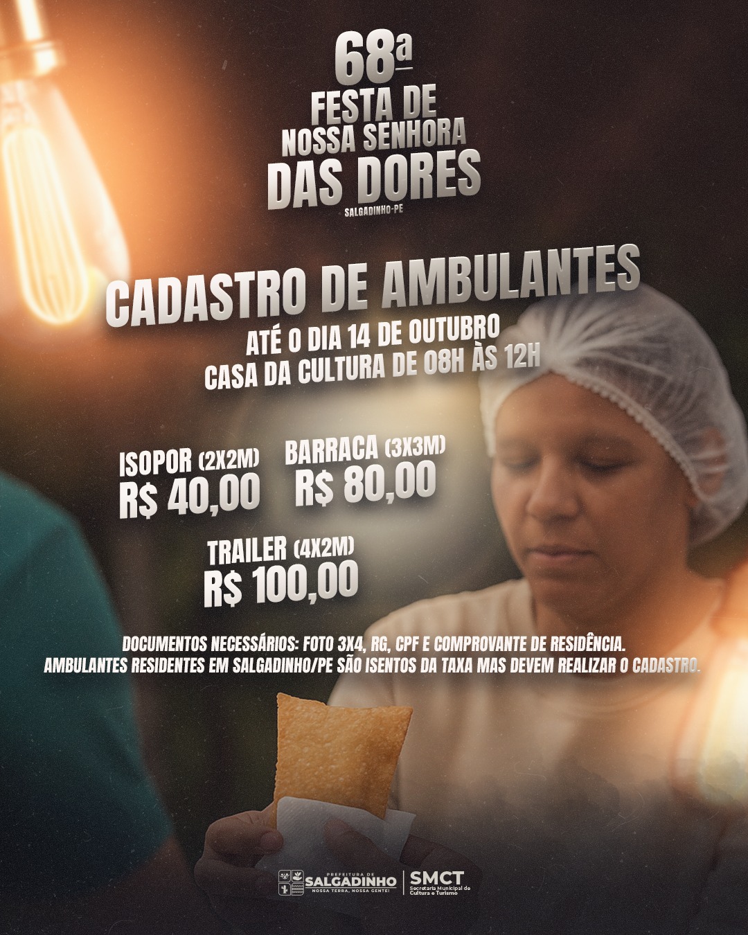 O cadastro acontecerá no período de 10 a 14 de novembro, das 8h às 11h, na sede da Secretaria de Cultura e Turismo. Podem se cadastrar pessoas físicas e jurídicas que atuam na área cultural em Salgadinho.