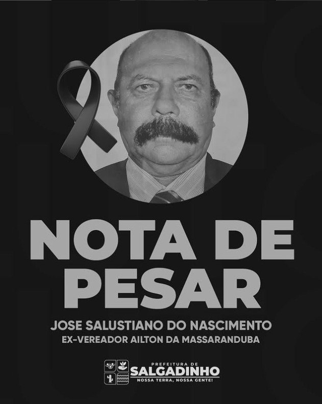 A Prefeitura de Salgadinho manifesta profundo pesar pelo falecimento de José Salustiano do Nascimento, conhecido como Ailton da Massaranduba, ex-vereador do município, ocorrido nesta data.